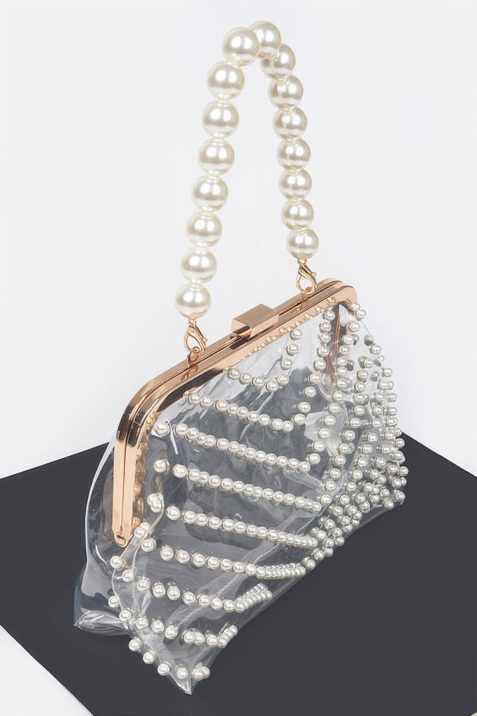 Fabric: Made from high-quality PVC, this transparent clutch offers a sleek and durable design that showcases the stunning stone studded accents Fit: Compact and stylish design, offering just the right amount of space to hold your essentials, such as your phone, cards, and makeup Color Options: Available in Clear and Cream, providing a sophisticated color combination that easily complements various outfits Sizes: Dimensions: 8W x 6H x 3D, the perfect size for a night out while still offering ample space for your essentials Design: Features eye-catching stone studs and a transparent body, giving the clutch a modern, luxe feel with a unique twist Versatile Styling: Ideal for evening events, cocktail parties, or special occasions, adding a touch of sparkle to your outfit