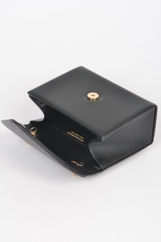 The Vegan Luxe Noir Bag delivers a refined blend of sustainability and sophistication with its sleek design and radiant gold-tone metal handle. Crafted from high-quality vegan polyurethane leather and mixed metal accents, this compact yet structured accessory adds instant polish to any outfit. Measuring 6.5 inches wide, 5 inches high, and 3 inches deep, it offers just enough space for your daily essentials while maintaining a clean, modern profile. Designed for the style-conscious and eco-aware, this versatile piece moves seamlessly from daytime elegance to evening chic.