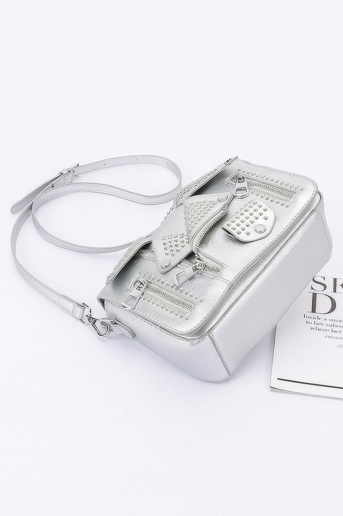 Features metal studs for an edgy finish