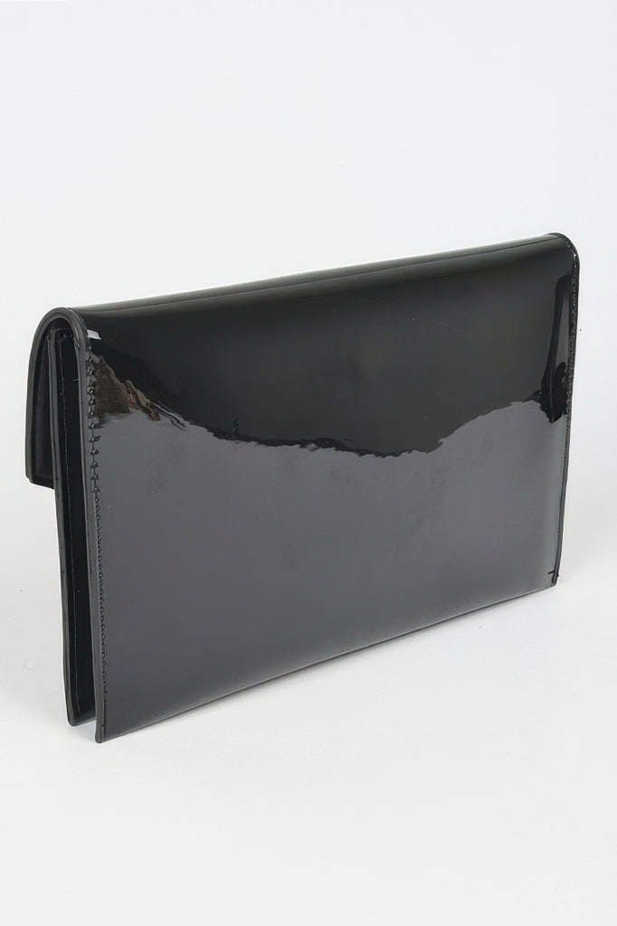 Chic and contemporary, the Enamel Faux Leather Metal Handle Flap Clutch is the ultimate accessory for polished evenings out. Crafted from glossy faux leather, this sleek clutch features an envelope-style flap and a bold metal ring handle that doubles as a striking design detail and practical grip. A detachable chain strap allows for hands-free styling when needed. With its structured silhouette and modern finish, this piece brings an elevated edge to both formal and cocktail attire. Designed to balance fashion-forward aesthetics with everyday functionality, it’s a must-have for your evening collection.